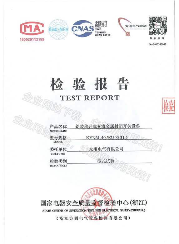 鎧裝移開式交流金屬封閉開關(guān)設(shè)備檢驗報告查看詳情>>